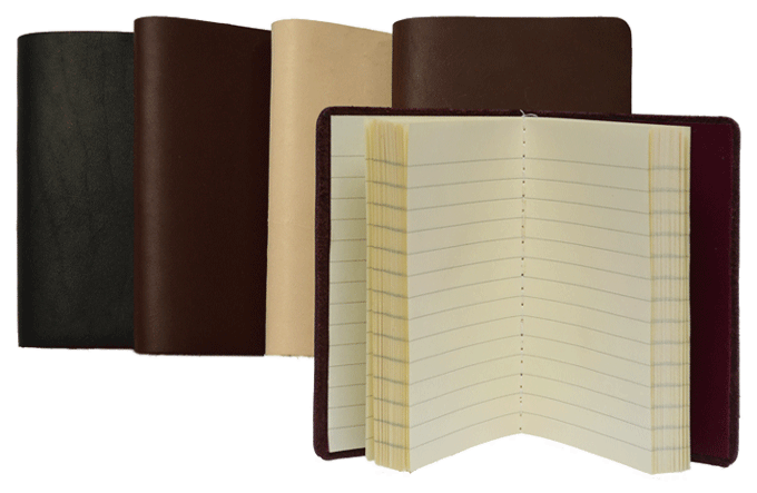 Made of full grain belting leather. Pocket center-stitched diary. 184 pages of cream paper with fain grey lining.